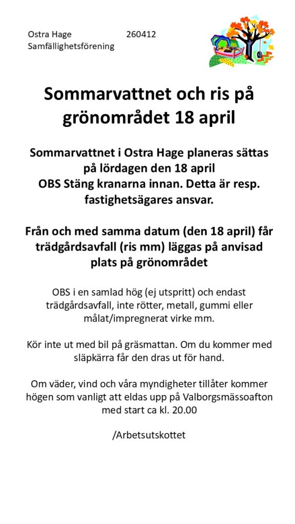 Uppdatereing 18 april: Sommarvattnet är nu påsatt